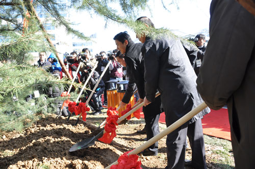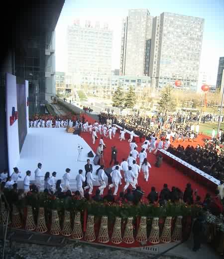 在現(xiàn)場可以看到,一個(gè)巨大的幕布從大廈西側(cè)的頂樓垂下,上面印著百度數(shù)千名員工照片組成的笑臉,使過往的行人都感受到慶典儀式的喜慶氛圍。儀式上,300名百度員工及百度愛好者們共同出演“百人秀”,通過跑動在大廈前的廣場上排出一個(gè)個(gè)活潑生動的慶典圖案,更將整個(gè)活動的氣氛推向高潮。最后,李彥宏和員工及網(wǎng)友代表一起,在大廈前種下一棵象征基業(yè)長青的雪松,培上百度各地網(wǎng)友取來的五岳之土,并以長江、黃河之水澆灌。