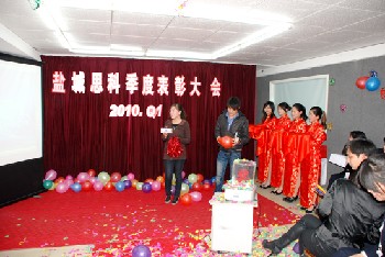 隨后的頒獎(jiǎng)儀式上,總經(jīng)理室成員陳宏春(總經(jīng)理)、成國(guó)榮(總經(jīng)理助理)分別為冠軍團(tuán)隊(duì)和個(gè)人頒發(fā)獎(jiǎng)項(xiàng),冠軍獲得者陳劉珍、胥蘭花、嚴(yán)明各自發(fā)表了熱情洋溢的獲獎(jiǎng)感言。隨后,公司管理層分別為其他獲獎(jiǎng)?wù)哳C發(fā)獎(jiǎng)項(xiàng)。期間,公司文藝隊(duì)生動(dòng)活潑的表演,贏來(lái)陣陣喝彩。