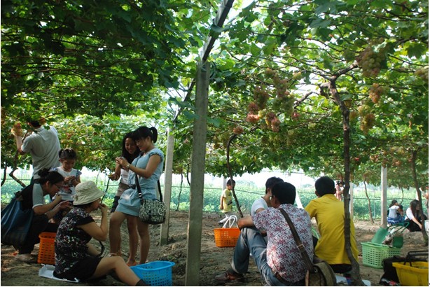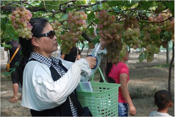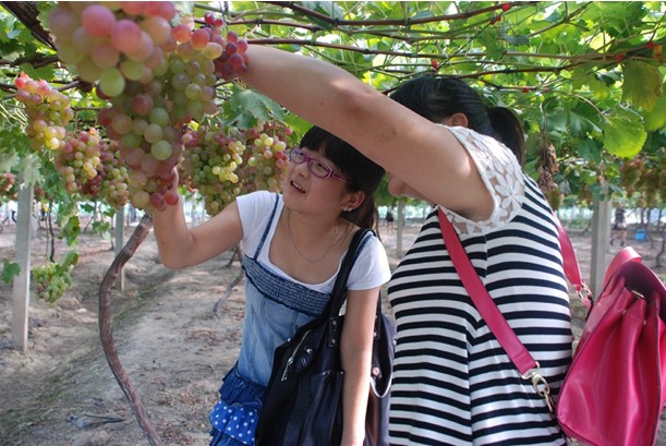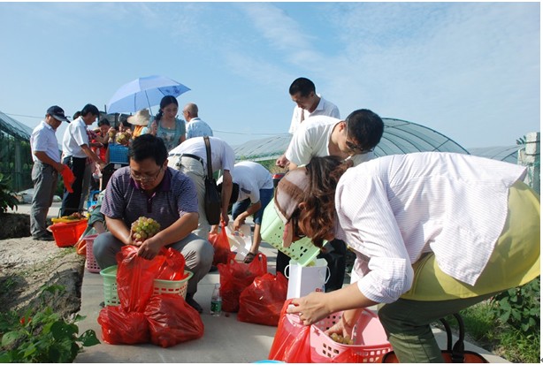 午宴之后,客戶與員工乘坐營(yíng)銷體驗(yàn)車和大巴來到仰徐農(nóng)業(yè)科技有限公司的葡萄園,收獲這次的豐收之旅。